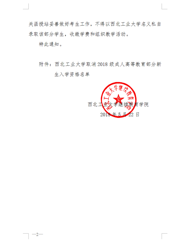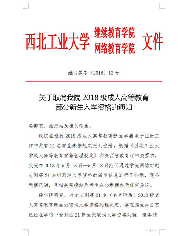 关于取消公司2018级成人高等教育部分新生入学资格的通知