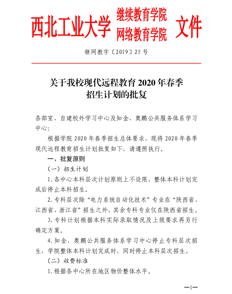关于公司现代远程教育2020年春季招生计划的批复