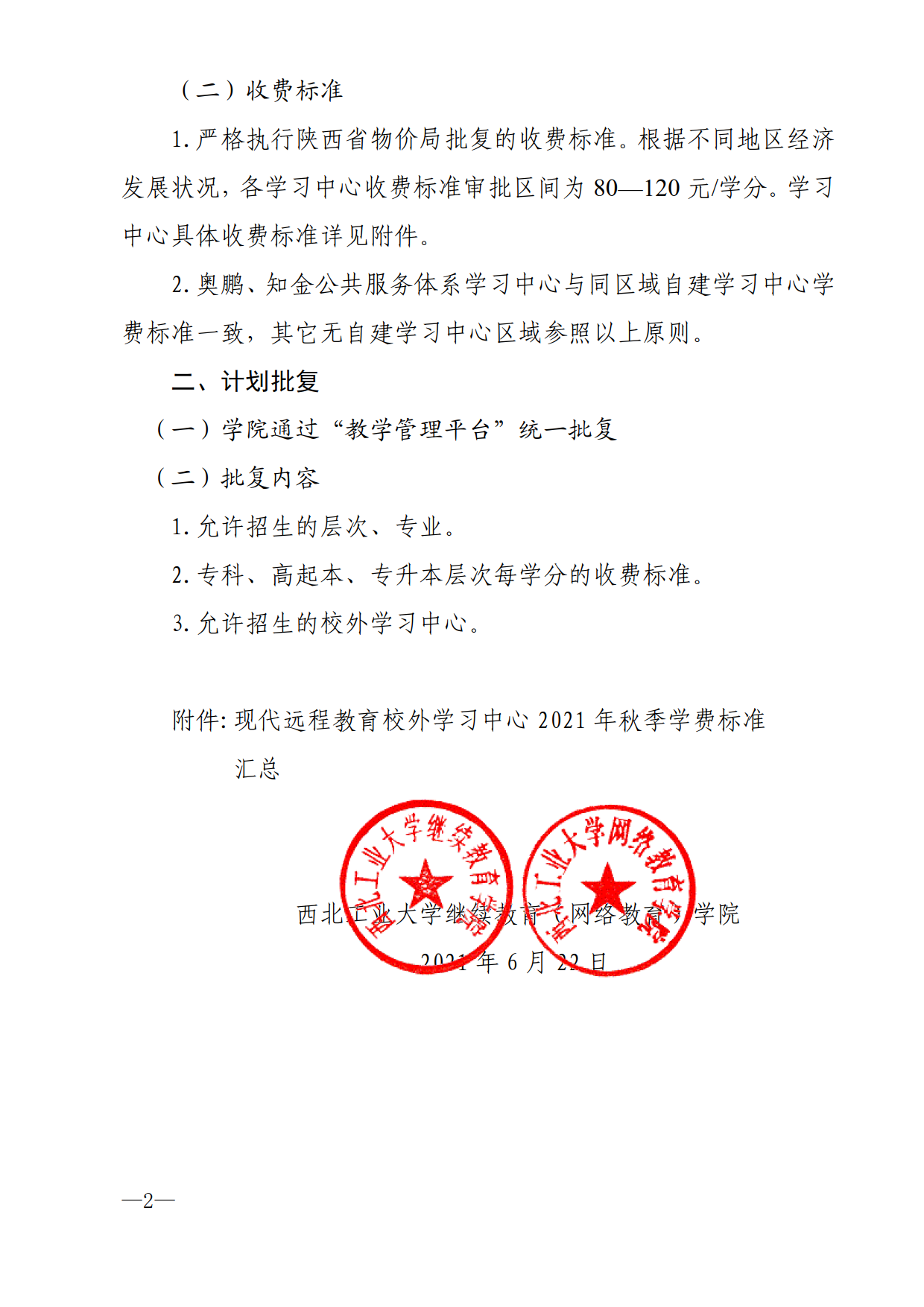 关于公司现代远程教育2021年秋季招生计划的批复