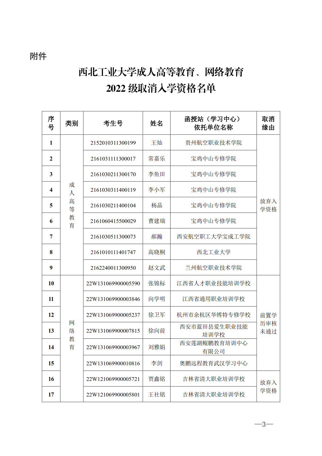关于取消2022级成人高等教育、网络教育部分考生入学资格的通知